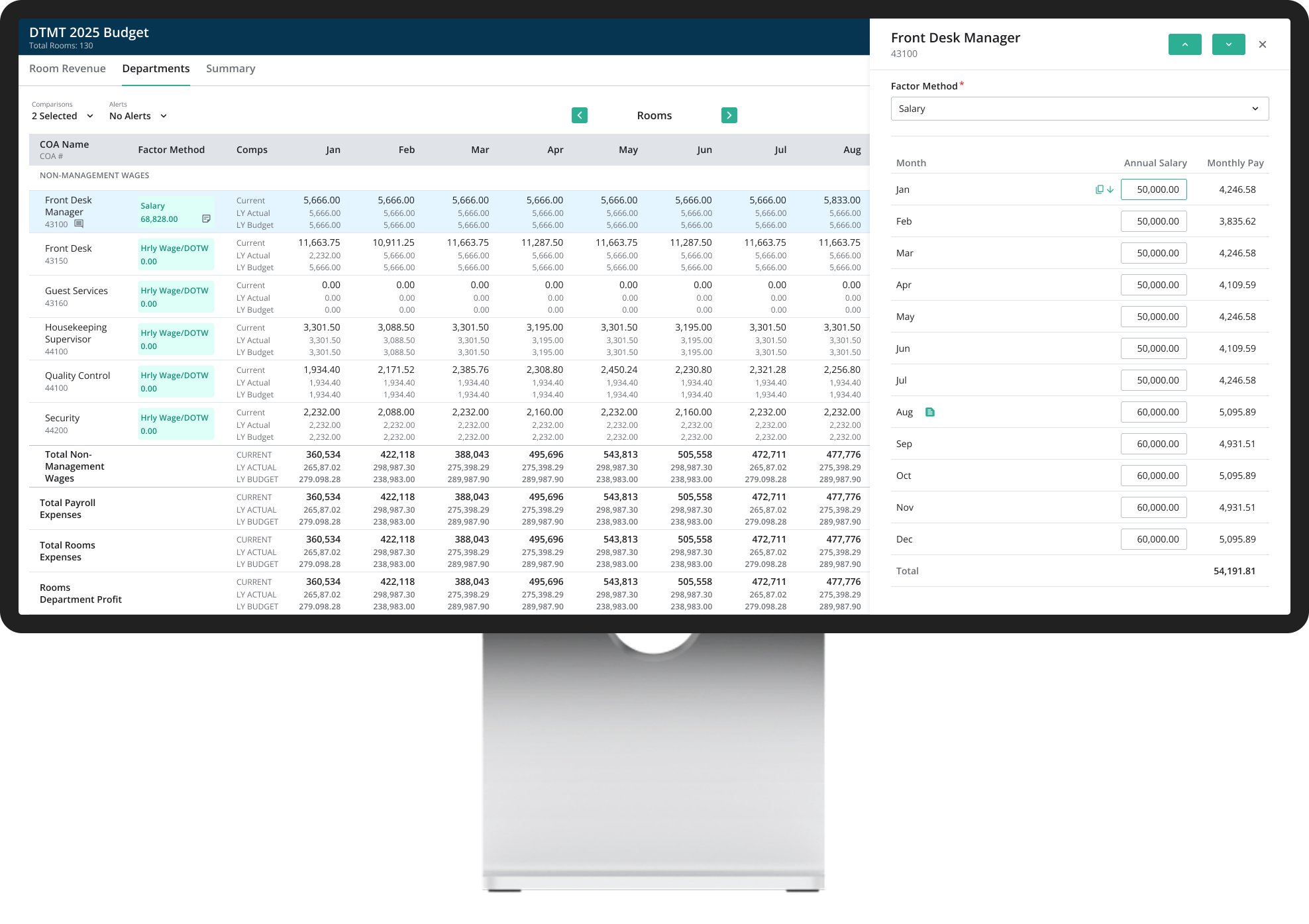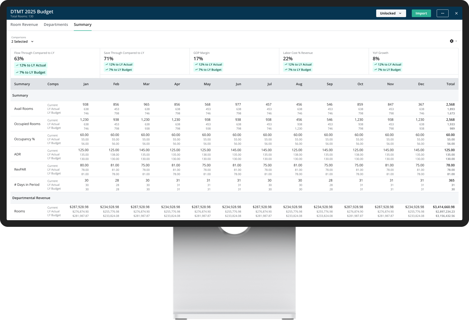 Operational budgets touch every corner of a hotel, from housekeeping to food & beverage, and the process of building one involves a lot of people and data. As lead designer, my job was to untangle that complexity. I focused on making a dense workflow feel approachable and intuitive, no matter where someone sat in the org chart.